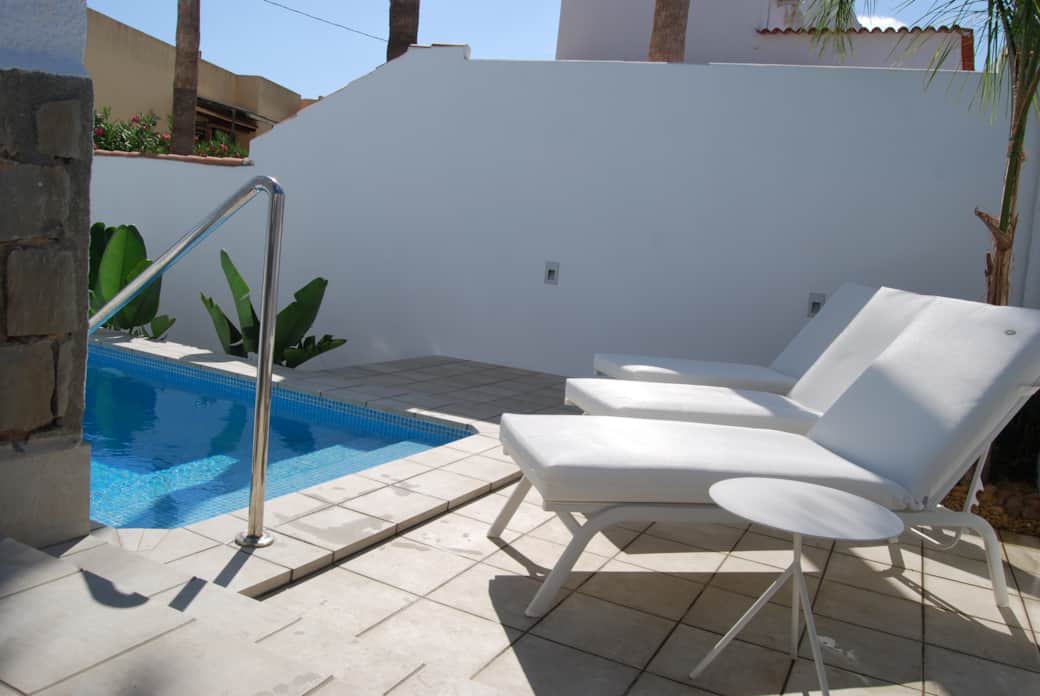 Casa Tomillo's outdoor area is small, yet practical and attractively furnished, offering everything you need to fully enjoy outdoor living. The terrace is furnished with comfortable lounge chairs for relaxing under the Spanish sun. The private 8x2-meter pool is perfect for a refreshing dip or to cool off on hot days. There's also an outdoor shower by the pool, ideal after a day at the beach.